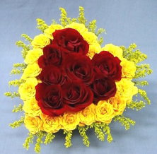 AT-003 ハートをかたどったバラのアレンジメント 高さ60cmx幅約45cm 価格:16,500円(消費税込) |