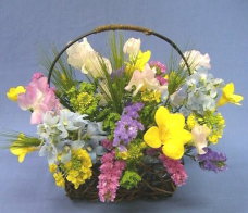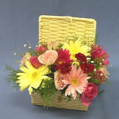 AT-035 バスケットにミックスアレンジメント 高さ約20cmx幅約22cm 価格:4,400円(消費税込) |