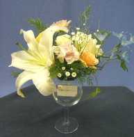 AT-034 ワイングラスにアレンジメント 高さ約30cmx幅約25cm 価格:4,400円(消費税込) |