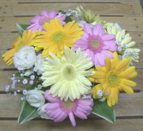 ![]() AT-014 ガーベラミックスアレンジメント 高さ約10cmx幅約25cm 価格:4,400円(消費税込) |