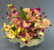 ![]() AT-045 デンファレ他のアレンジメント 高さ約25cmx幅約25cm 価格:3,850円(消費税込) |