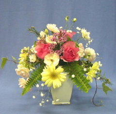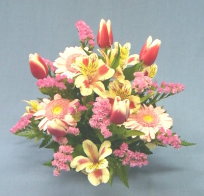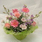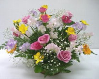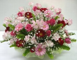![]() AT-008 ピンク系のアレンジメント 高さ約25cmx幅約25cm 価格:3,300円(消費税込) |
