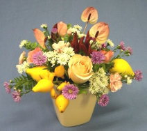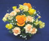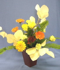 ![]() AT-007 オレンジ系のアレンジメント 高さ約25cmx幅約25cm 価格:3,300円(消費税込) |