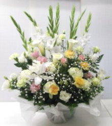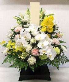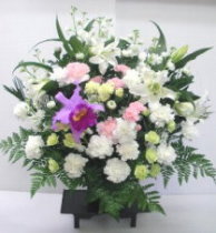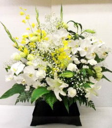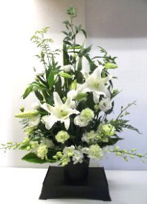 | 写真と同じイメージでお作りいたしますが、季節等により一部花材・花器が異なる場合がご ざいます。お名札(無料)を付けることもできます。写真以外のご注文もお受けいたします。 お気軽にお問合せ下さい。 電話049−281−0354 |